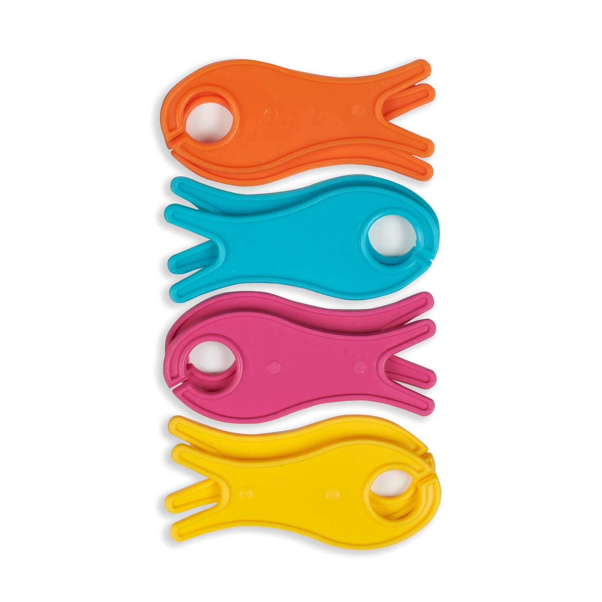 Spindle to wind yarn or thread and ideal for sorting and storing yarns of different colours and weights. Helpful when knitting with different yarns to prevent entanglement. Made from plastic in an assortment of bright colours. Pack of 10.